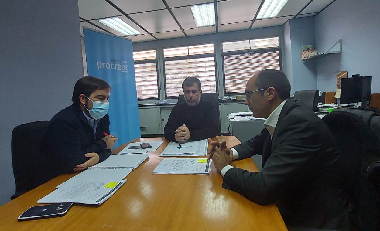 Con el objetivo de continuar avanzando en materia de políticas habitacionales, Pisano se reunió con el subsecretario de Política de Suelo y Desarrollos Habitacionales Juan Pablo Negro y el director nacional de Políticas de Suelo, Juan Ignacio Duarte.