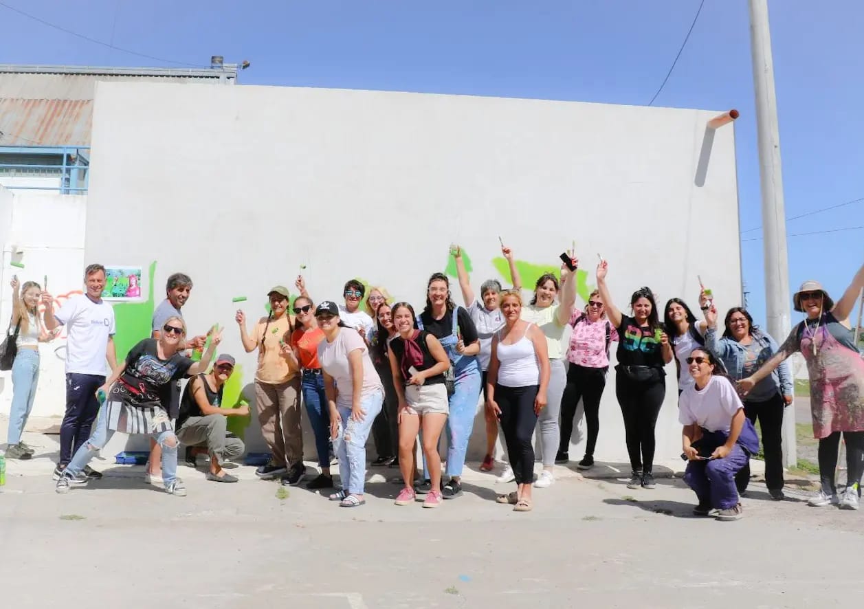 El equipo de la dirección que encabeza Marianela Zanassi, junto a familiares y amigos/as de las homenajeadas, acompañaron a las artistas locales Paula Danessa, Jazmín Woicik y Edicita Sarragoicoechea creadoras del boceto, en la jornada de pintada colectiva que tuvo lugar el fin de semana.