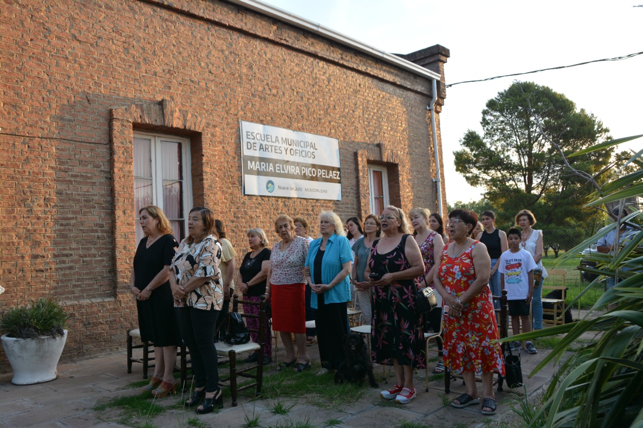 En la tarde de ayer, la secretaria de Cultura, educación y Deportes de la Municipalidad de Nueve de Julio, Julia Cereigido; acompañada de la Directora de Educación, visitaron la Escuela Municipal de Artes y Oficios “María Elvira Pico Peláez” de la localidad de Dudignac, donde participaron del acto de fin del ciclo lectivo 2022 de este establecimiento, y se entregaron certificados a los alumnos; mientras que posteriormente al acto protocolar, recorrieron la muestra de los trabajos realizados a lo largo del calendario, junto a la directora del establecimiento, Nana Enrico.
