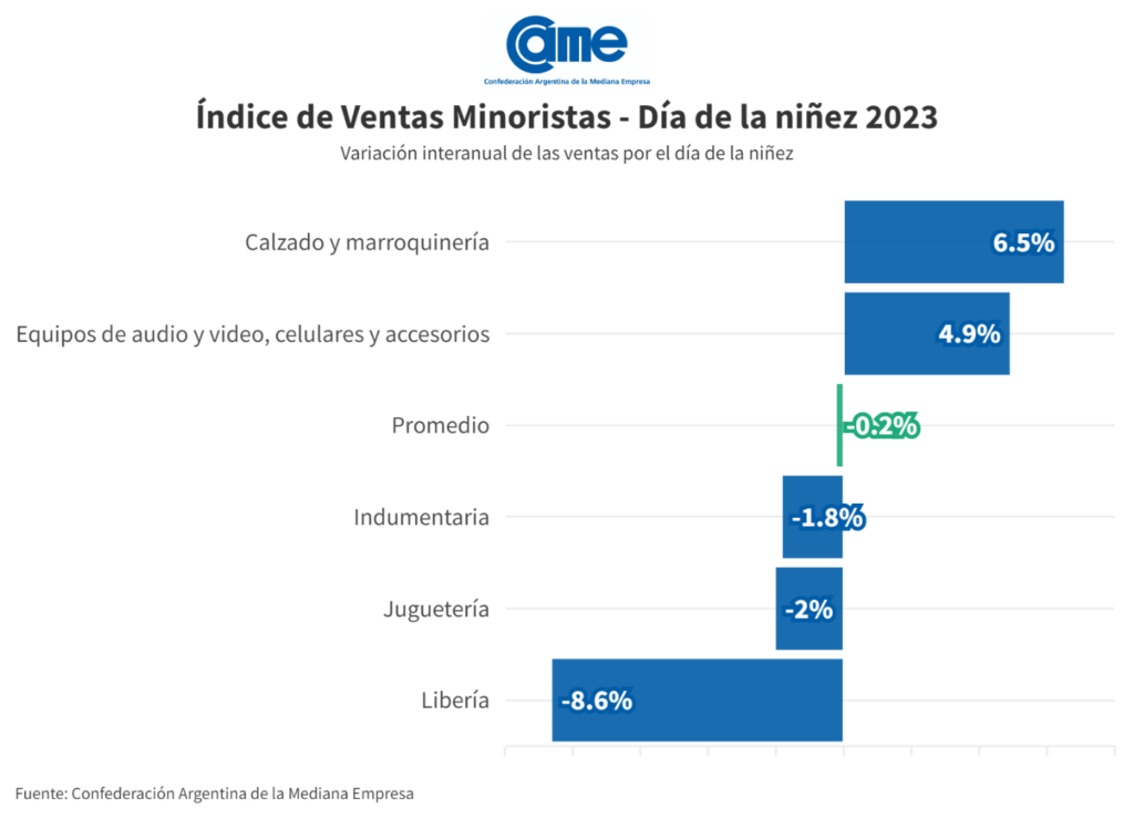 Las ventas minoristas pymes por el Día del Niño bajaron 0,2% frente a la misma fecha del año pasado, medidas a precios reales, en una semana marcada por remarcaciones generales que llegaron a superar el 30%.