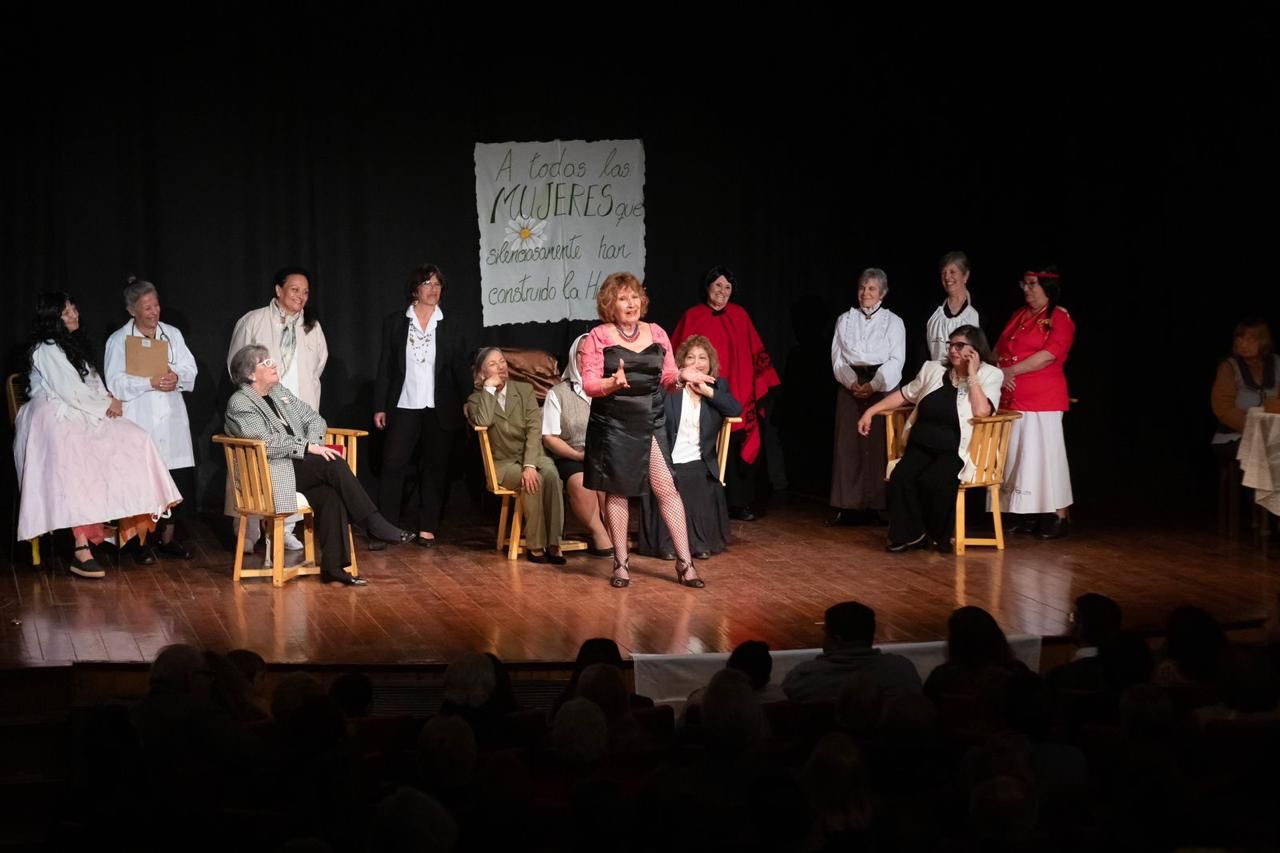 La obra, que se presentó a sala llena, fue producida en el espacio de teatro que llevan adelante en la Colonia que PAMI organiza en el Club Racing, consistió en un recorrido por la vida y la obra de algunas de las mujeres más destacadas de la historia argentina, como Juana Azurduy, Eva Perón, Alfonsina Storni, Mercedes Sosa, Juana Manso y María Elena Walsh, entre otras.