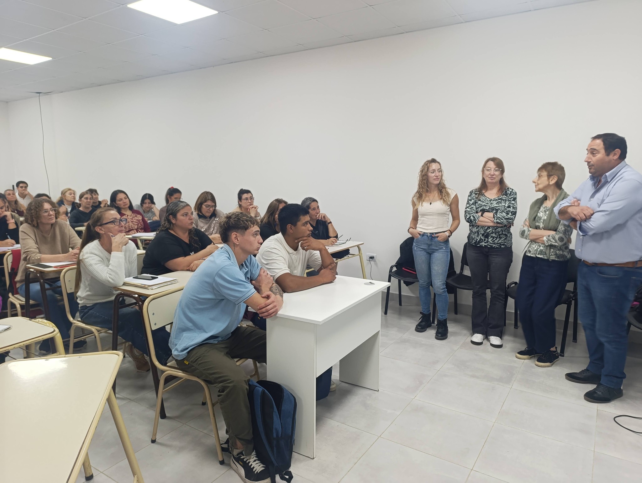 El Secretario de Gobierno, Martín Pulero Constanzo, estuvo saludando a las docentes y estudiantes, destacando el programa PUENTES del Gobierno de la Provincia de Buenos Aires para que en Alberti se puedan estudiar carreras sin necesidad de ir a otra ciudad y en un espacio con todas las condiciones.