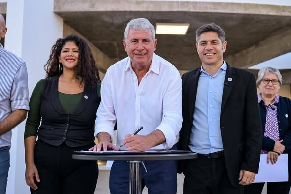La directora ejecutiva del OPISU, Romina Barrios, junto al Gobernador Kicillof y el intendente Jorge Gaute, firmaron el acta para el comienzo de esta obra tan importante para los vecinos.